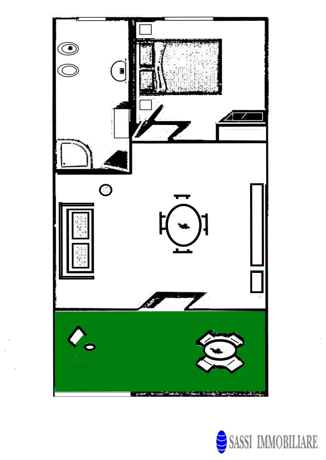 Bilocale per 4/5 persone con soggiorno con divano letto singolo e letto estraibile, camera matrimoniale e bagno oltre giardino pertinenziale di ca. 16 mq all’interno del prestigioso complesso turistico, il Residence Club La Castellana, in località Belvedere Marittimo (CS), nella Costa Calabro Tirrenica.