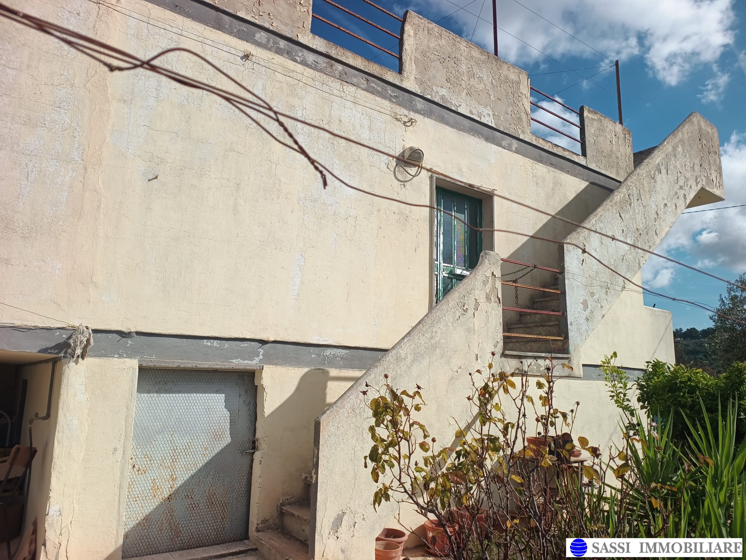 All’interno della proprietà sorge un fabbricato regolarmente accatastato ad uso abitativo, distribuito su due livelli (piano terra e primo piano), complessivamente esteso circa 70 mq, con terrazzo calpestabile sovrastante.
