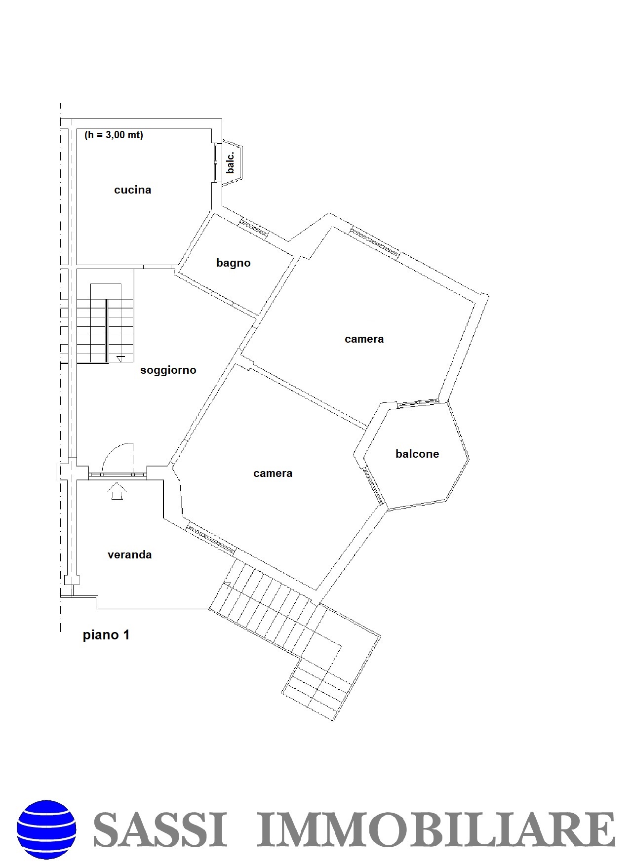 – Primo piano (90 mq) con ingresso indipendente, soggiorno, cucina, due camere da letto, bagno e una spaziosa veranda di 14 mq, oltre a due balconi.